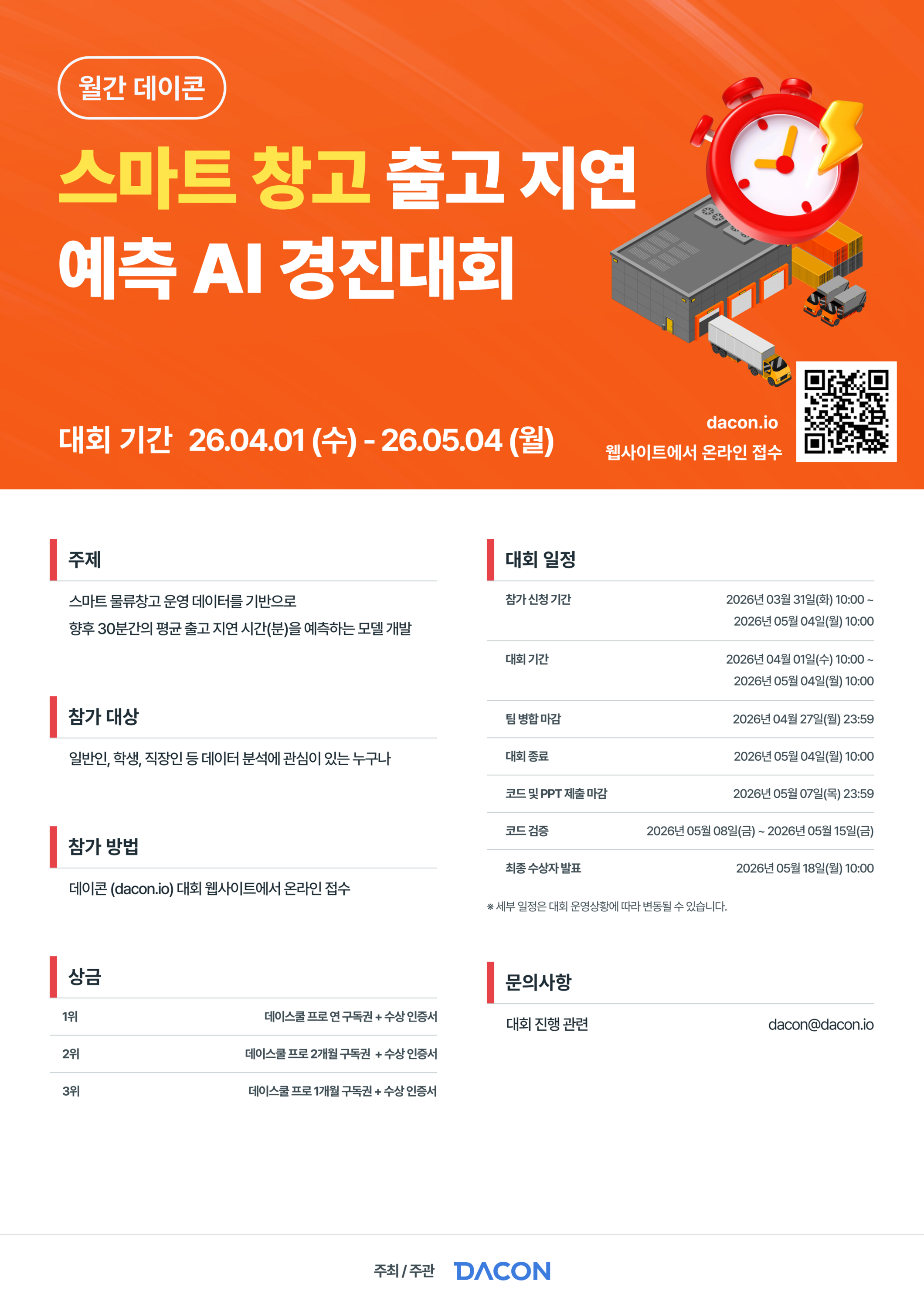 대회 홈페이지 내 토론 탭 (https://dacon.io/competitions/official/236696/talkboard)에 문의
