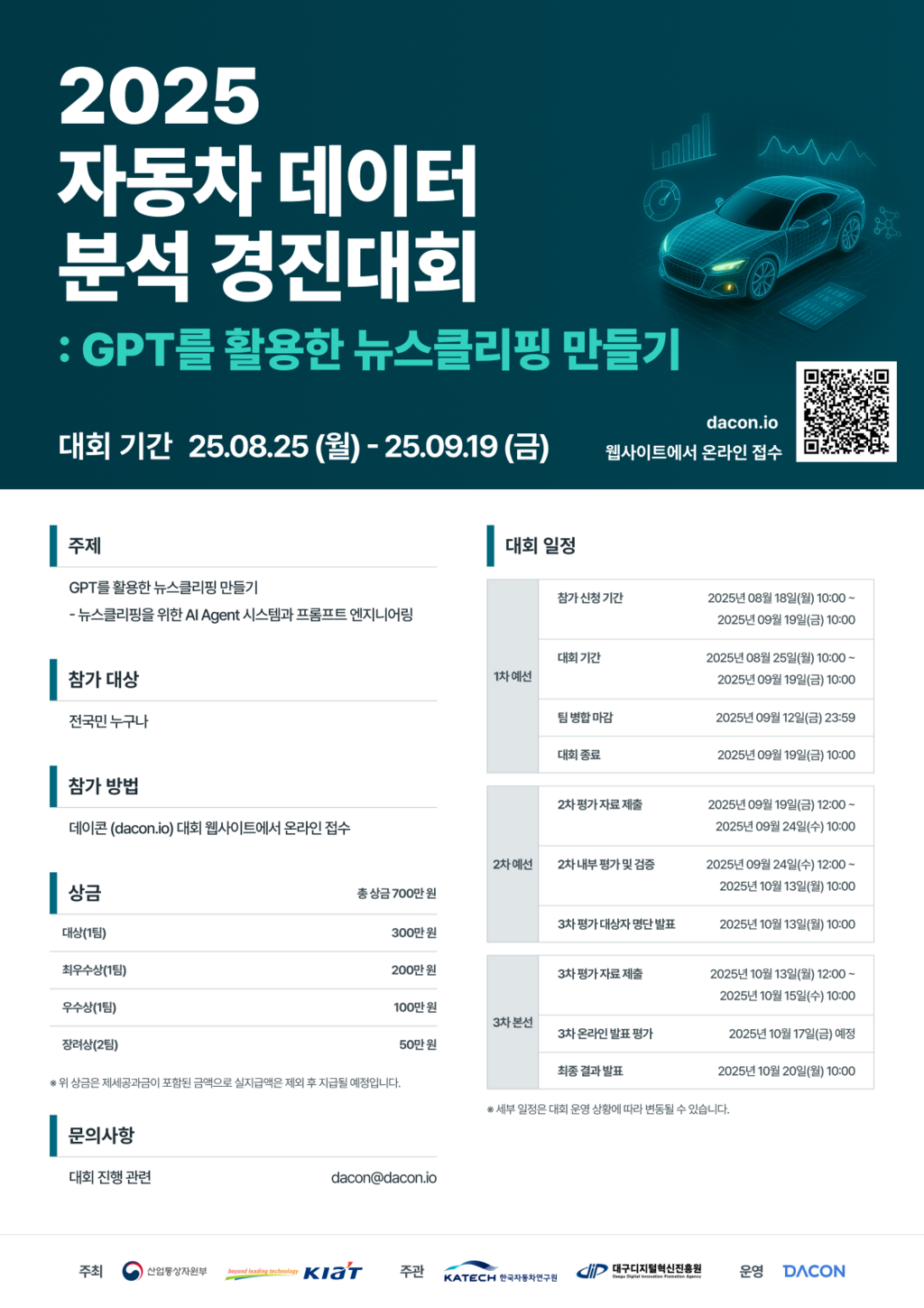 대회 홈페이지 내 토론 탭 (https://dacon.io/competitions/official/236577/talkboard)에 문의