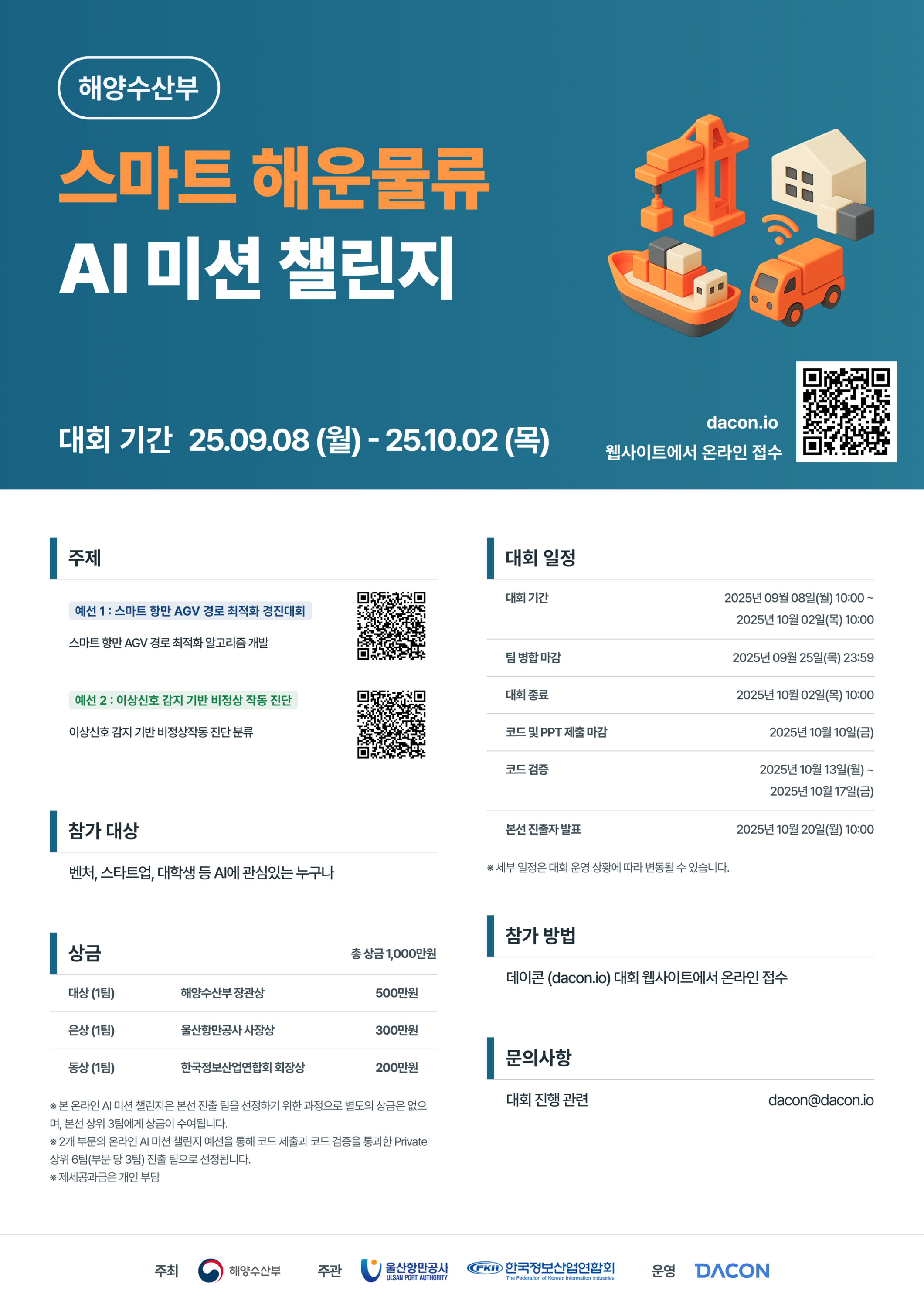 - 예선 1 : 스마트 항만 AGV 경로 최적화 경진대회