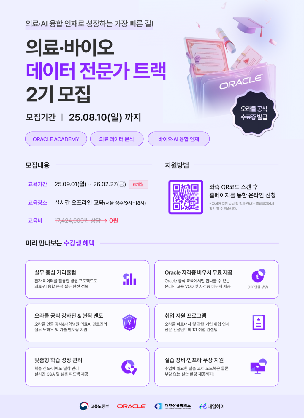 - Oracle 파트너사 포함 의료·AI 기업 취업 지원