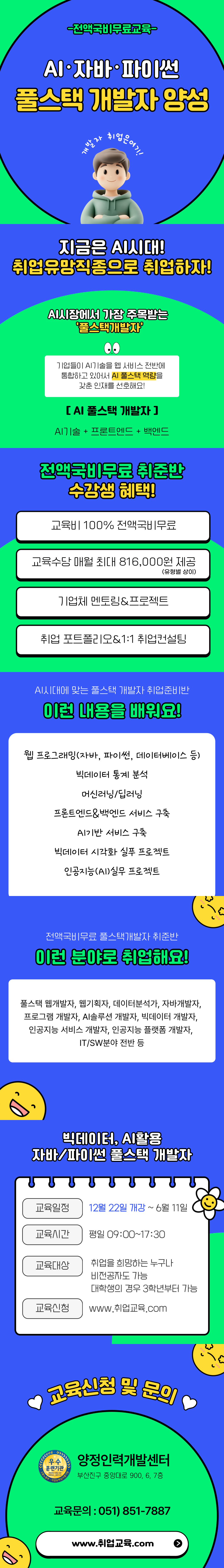 [전액국비지원/취업유망직종] AI 풀스택개발자 취업준비반(자바, 파이썬, 리액트)