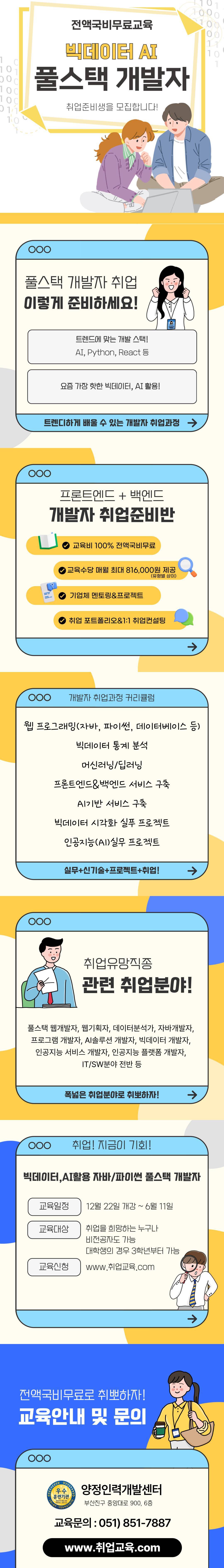 - 과정명 : 빅데이터 AI활용 자바/파이썬 기반 풀스택개발자 양성