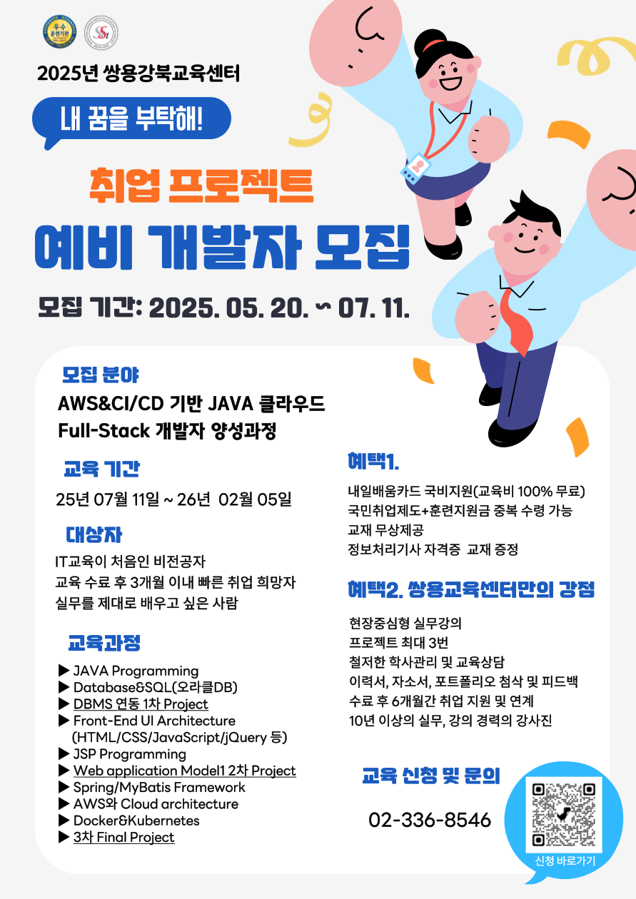 ✨지원절차 : 쌍용강북교육센터 홈페이지 회원가입 → 원하는 교육과정 신청 → 입과안내 → 등록