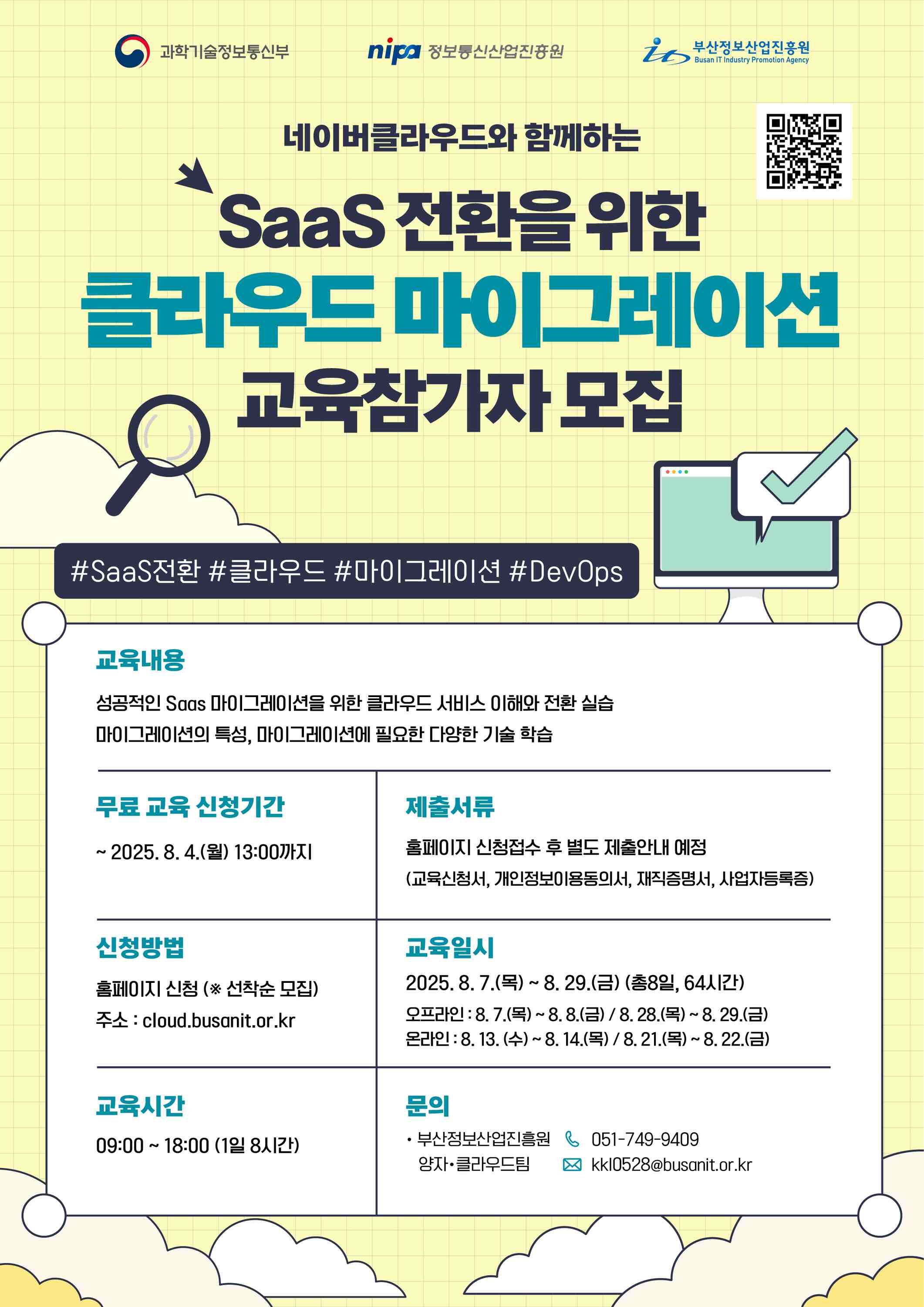 ํ๋กํ ๋งํฌ ๋๋ ํํ์ด์ง(cloud.busanit.or.kr) ์์ ๋ฐ๋ก ์ ์ฒญ! โป ์ ์ฐฉ์ ๋ง๊ฐ๋ ์ ์์ผ๋ ์ง๊ธ ๋ฐ๋ก ์ ์ฒญํ์ธ์!