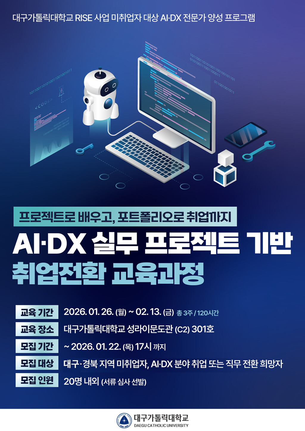 [대구가톨릭대학교] 미취업자 AI·DX 전문가 교육 프로그램 참여자 모집 (일정변경)