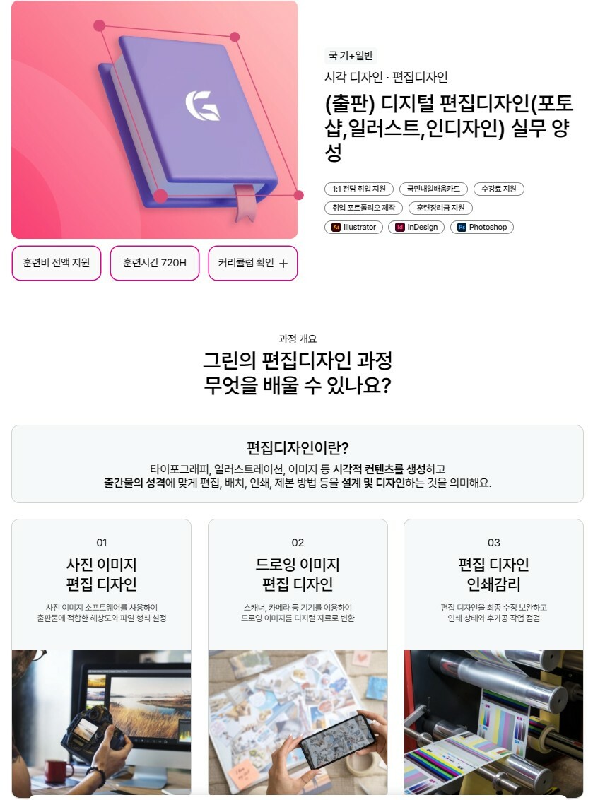 이미지 보정·그래픽 제작·출판 편집 등 실무에 필요한 필수 프로그램을 프로젝트 중심으로 학습합니다.