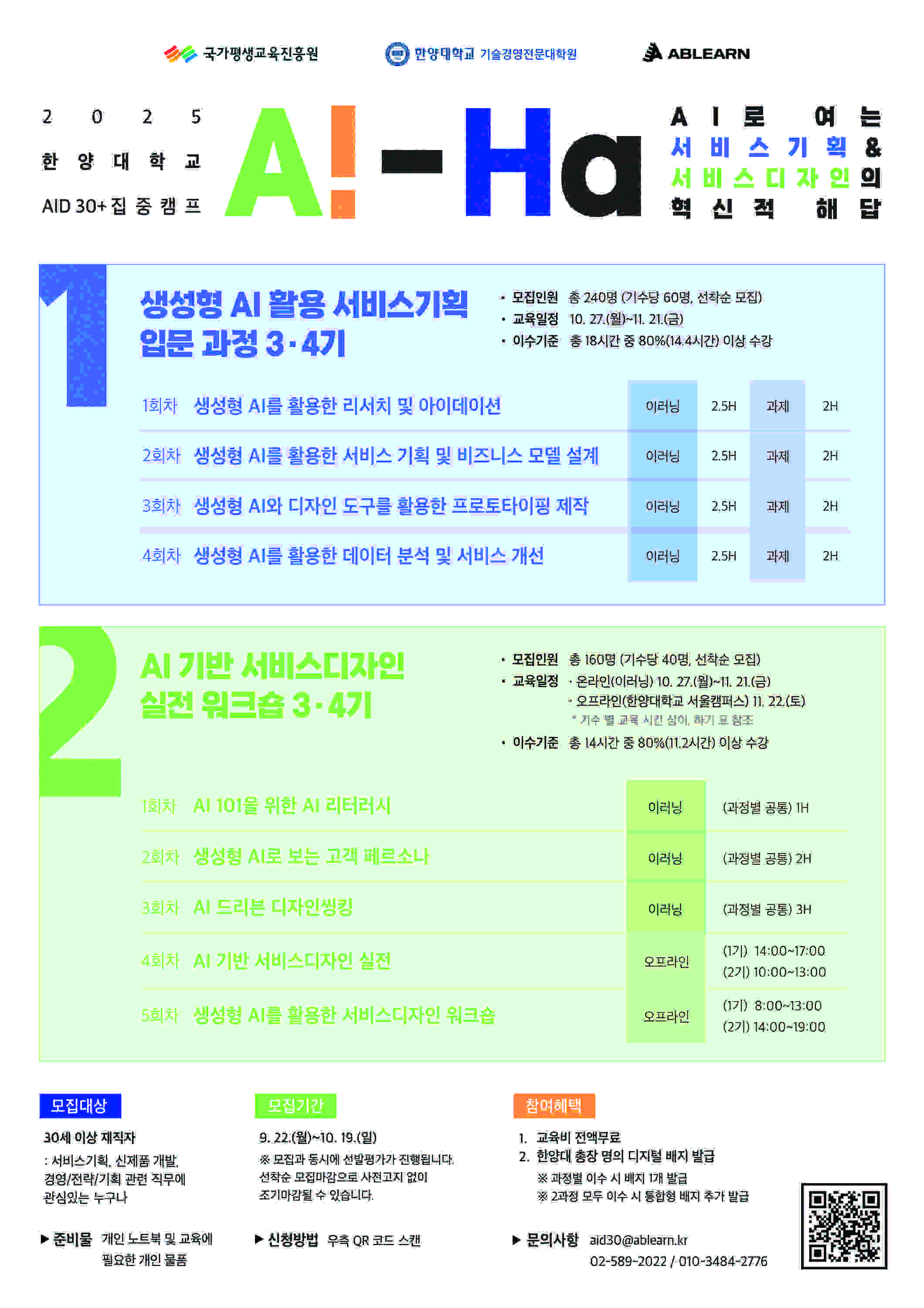 🚀 모두를 위한 AI 교육 전문기업 에이블런과 한양대학교 MOT가 함께 준비한 [A! Ha]!🚀