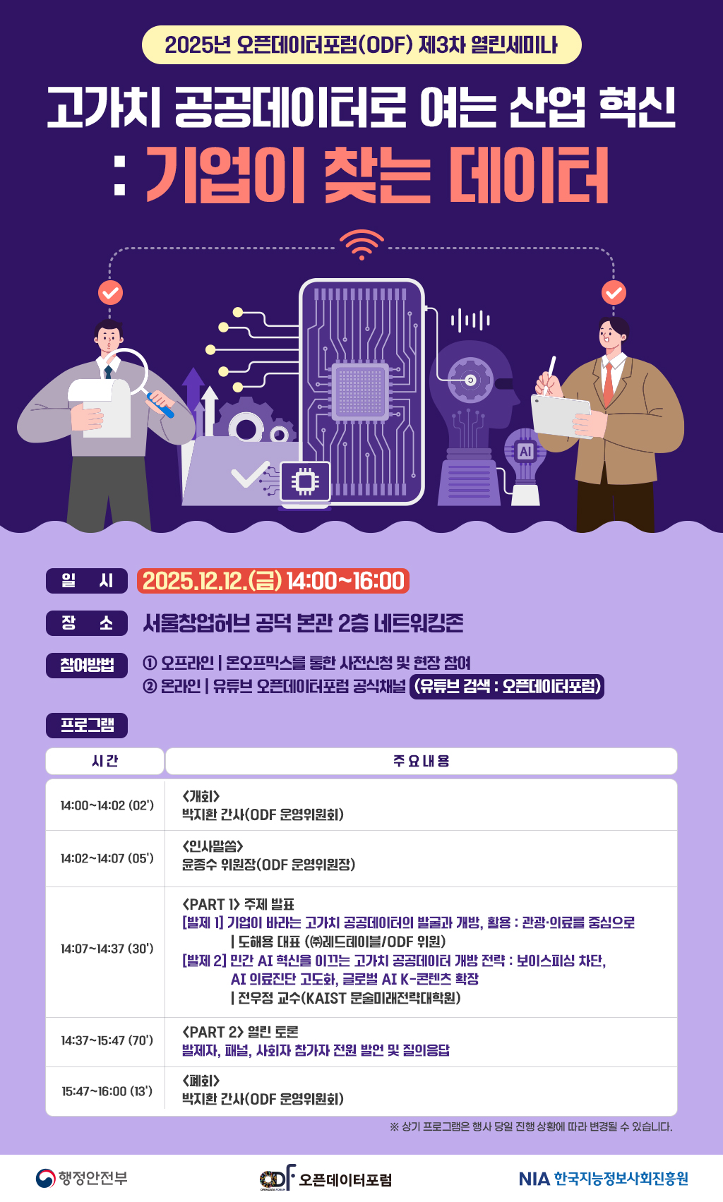 <2025년 오픈데이터포럼(ODF) 제3차 열린세미나>가 12월 12일(금) 개최됩니다!