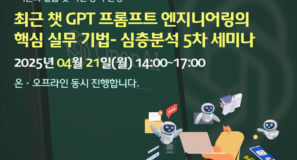 1. 행사명 : 최근 챗 GPT 프롬프트 엔지니어링의 핵심 실무 기법- 심층분석 5차 세미나