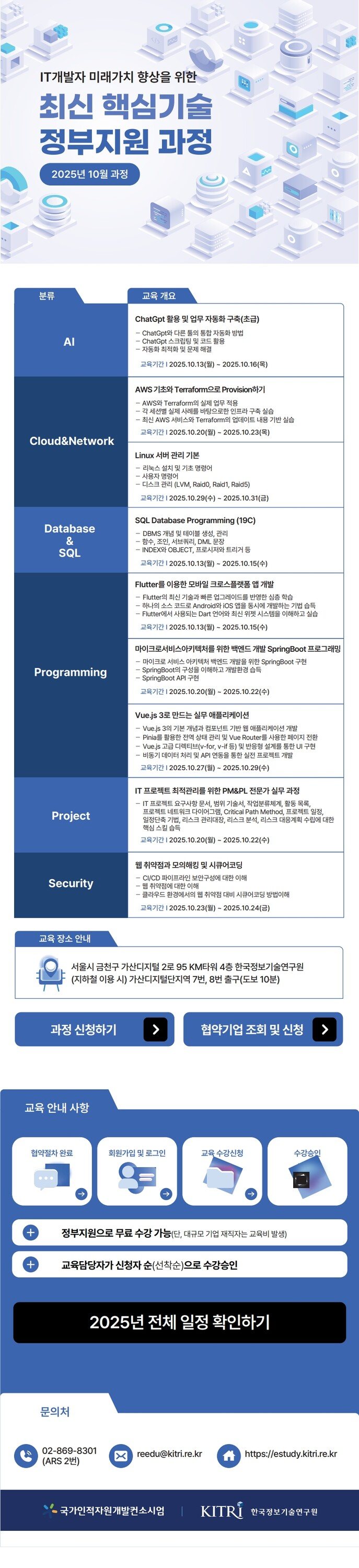 한국정보기술연구원의 2025년 10월 재직자 역량 강화 교육과정 안내드립니다.
