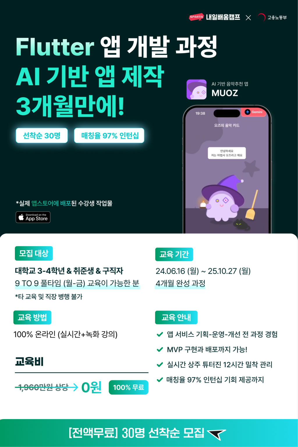 서비스 운영과 개선 경험이 빠른 앱 개발자 취업의 핵심! 여기에 인턴십 경험까지? = 단 4개월, 0원으로 하반기에는 Flutter 개발자 커리어 시작 가능✨