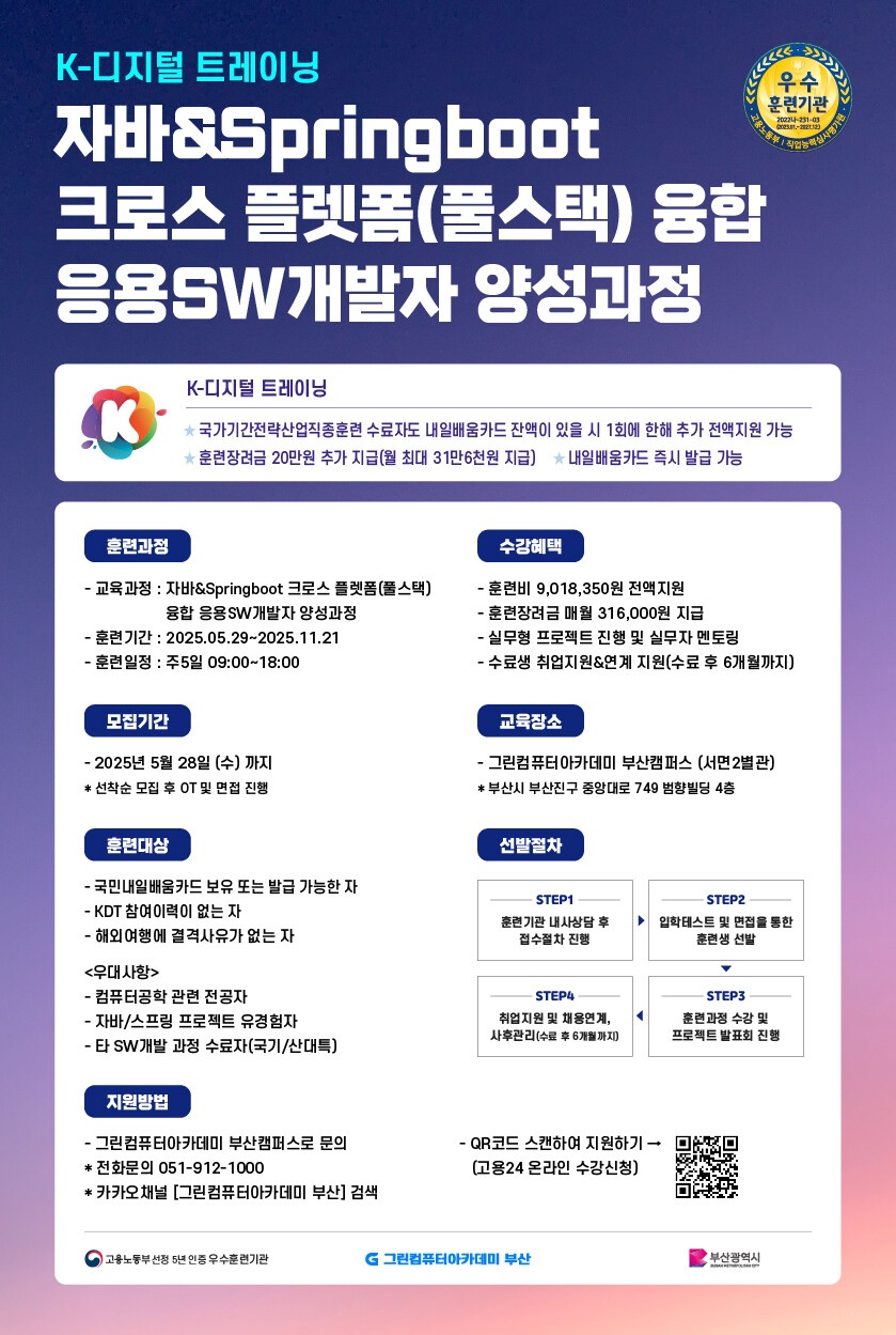 ■ 과정명 : [K디지털트레이닝] 자바&Springboot 크로스 플렛폼(풀스택) 융합 응용SW개발자 양성과정