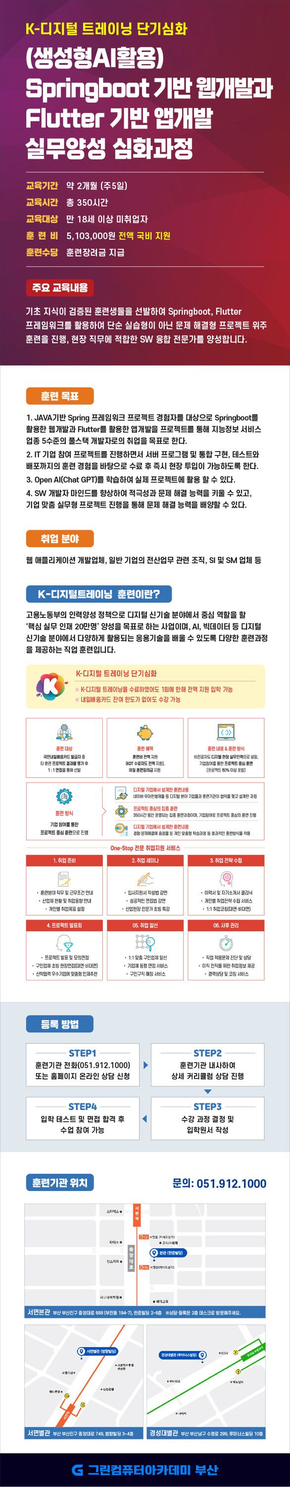 ■ 과정명 : [K디지털트레이닝 단기심화] (생성형AI활용)Springboot 기반 웹개발과 Flutter 기반 앱개발 실무양성 심화과정