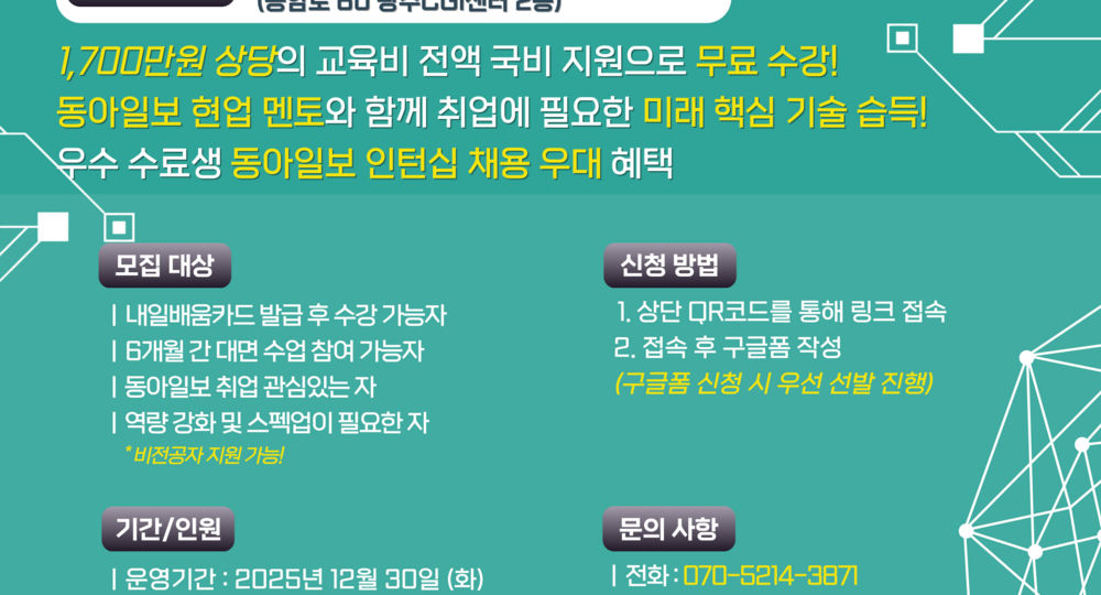 실제 동아일보 데이터로 배우고, 취업까지 연결되는 실무 중심 교육 과정에 도전해보세요.
