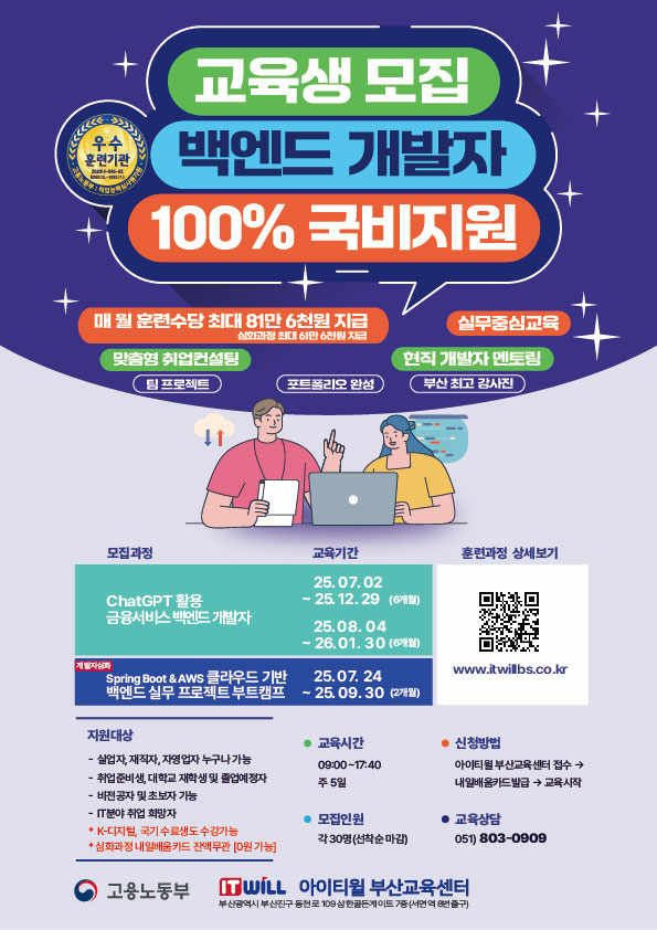 KDT 또는 국기 교육과정 수료 후 한 번 더 과정 수강을 원하시는 분들 을 위한 과정입니다.