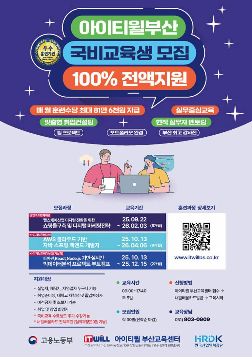 전액 국비 무료, 매월 훈련수당 지급 (최대 81만 6천원)
