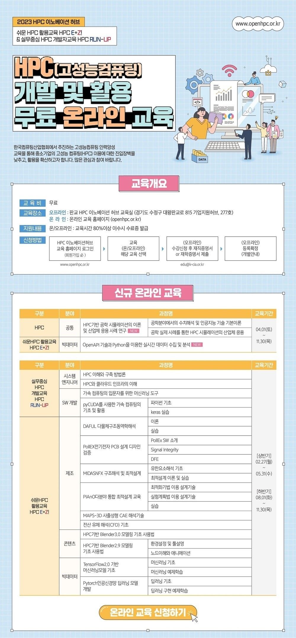 [무료 교육] 2023년도 HPC 개발 및 활용 신규 온라인 교육 및 상반기 온라인 교육 신청 안내