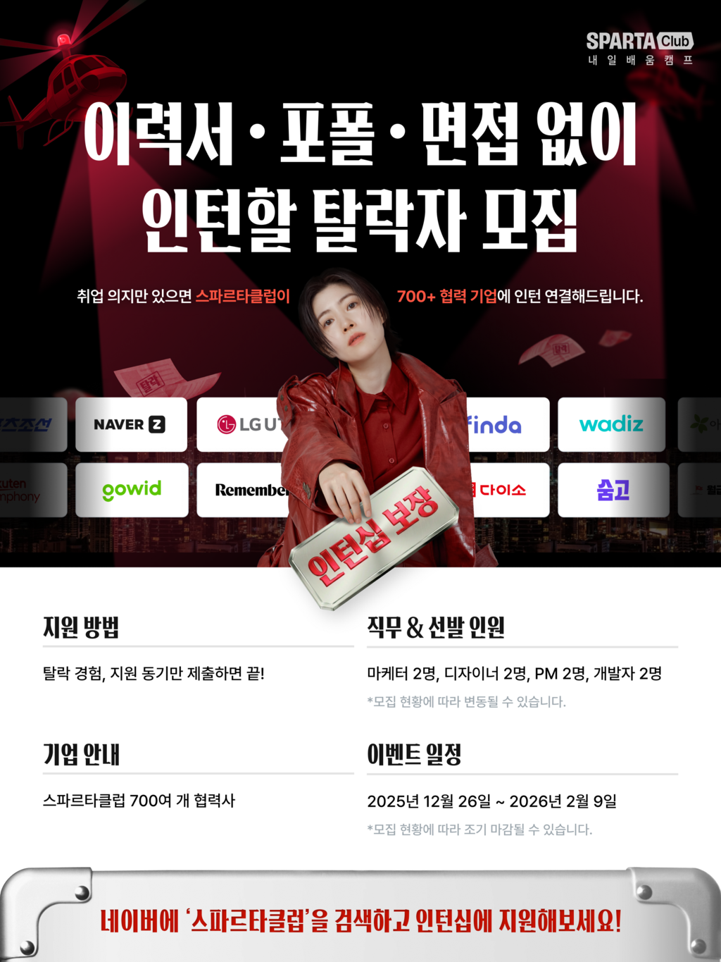 스파르타클럽이 책임지고 700+ 협력 기업에 인턴 연결해드립니다!🔥